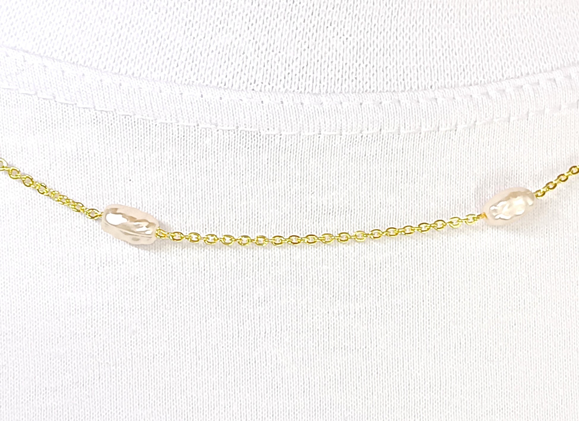Gargantilha folheada, com uma densa camada ouro 18k, com Pérolas.